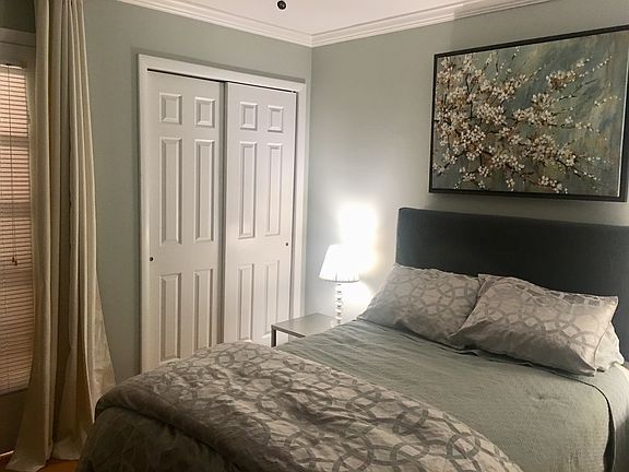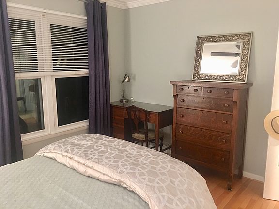 Rent upper level furnished bedroom , Furnished with full bed, bookshelf, desk, chair, lamps, nightstands. If you work from home we can provide a bigger desk and desk chair. Kitchen fully stocked with pots and pans dishes for easy cooking and enjoyment. Laundry room in house. Main shared level of house is furnished