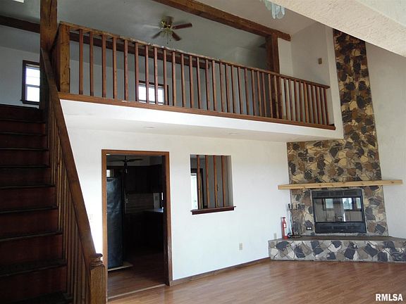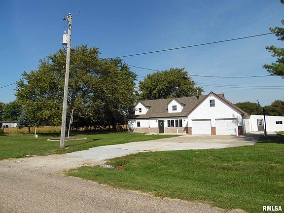 Updated 5 Bedroom home in Illini Bluffs school district. New Roof-Flooring-Bathrooms-Barn door to Bath. Large loft/family room overlooking the Living room with Wood burning Fireplace. Oversized 2 stall garage walks through to additional Building with 3 more car bays used to store and work on cars. 12x14 Shed with concrete floor. Large Fenced yard on just under 1 acre. Close to Butler Haynes park. Approved for 100% USDA Financing for those who qualify.