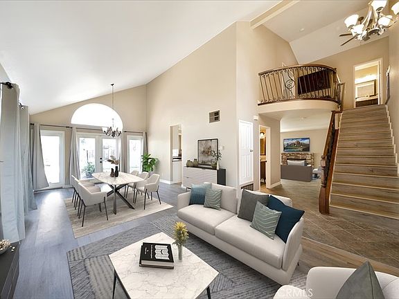 **IMPROVED PRICING** Gorgeous recently updated two-story Orangecrest home. Upon entry you will be drawn to the high vaulted ceilings and streams of natural light flowing through the large accent windows in the living and dining areas with brand new flooring. There's an open living and dining room off the entryway. The kitchen is very open and spacious providing plenty of counterspace and cabinets, and a view to the backyard. It has stainless steel appliances, granite counters, recessed lighting, and bright white cabinetry. The family room and breakfast nook are on the other side of the kitchen. French door leads to the covered backyard patio with a spacious back and side yard perfect for the kids, pets, and entertainment. The Upstairs area boasts wrought iron railing leading up the stairs where you will find a loft perfect of your home office, three spacious bedrooms, and two bathrooms. The master suite is very spacious and offers a beautiful en suite bathroom with a large soaking tub, separate shower, and a double vanity sink. There is also a private balcony off the master bedroom. This home is conveniently located near award winning schools, shopping, and dining.