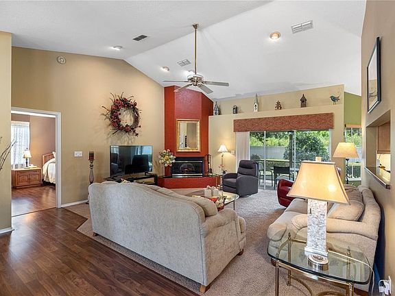 Welcome to this stunning executive home tucked away at the end of a beautifully private area in the sought-after community of Cranes Roost, New Port Richey. This move-in ready property boasts a three-car garage—perfect for extra storage, hobbies, or a workshop—and the home features a brand-new 2025 shingle roof for lasting peace of mind. From the moment you arrive, the long brick-paved driveway and mature landscaping sets the tone for this well-kept home. The double-door front entry opens to a bright and inviting interior filled with natural light, vaulted ceilings, and thoughtful finishes. The grand dining area at the front of the home is perfect for entertaining, while the living spaces flow effortlessly into the heart of the home—the kitchen. Here you’ll find upgraded cabinets with crown molding, a pantry with pull-out shelving, newer stainless steel refrigerator, Corian countertops, and a sunny breakfast nook with stunning garden views. The living room centers around an upgraded electric fireplace, spacious living room, easy slider door access to the rear screened-in porch. the outdoor living is where you can enjoy the tranquil, country-like backyard setting. The fully fenced yard and lush landscaping offers both privacy and charm that you'll love. The master suite is a true retreat, featuring a versatile sitting room/office with pocket doors, spacious his/her walk-in closets, and a beautifully designed en-suite bathroom. Relax in the garden tub or refresh in the separate shower stall, all accented stylish designer colors. Additional highlights include textured ceilings throughout, a large utility room with oversized sink, washer and dryer that convey, irrigation on a private well will save big on your water bills monthly. 2018 air conditioner and 2015 water heater. This home has it all—style, comfort, and practicality—set in a quiet, established neighborhood with a welcoming feel. Don’t miss your chance to own this Cranes Roost gem in New Port Richey. Seller to include a 1 year home warranty with American Home Shield a $650 value.