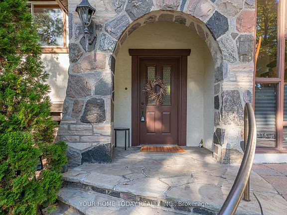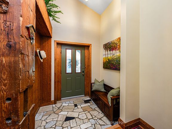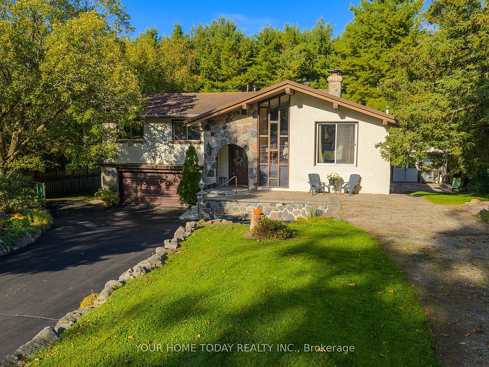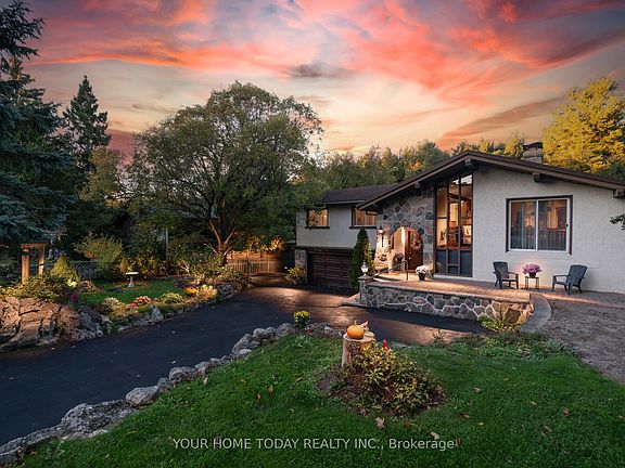 One-of-a-kind is the only way to describe this unique home that was custom built by the current owner 54 years ago and has been loved and cared for over the years with pride of ownership inside and out! Situated on a gorgeous acre, beautifully landscaped, mature lot with a separately fenced inground pool and multiple outbuildings including a large, detached workshop with basement. A covered portico welcomes you into this distinctive home where you will find a delightful warm and inviting open concept design from top to bottom. The main level feature vaulted beamed ceilings, spectacular floor to ceiling windows (from lower level to upper level) and an abundance of stone and wood detail. The kitchen enjoys neutral white cabinetry, large island, granite counters and views over the gorgeous grounds. The living room overlooks the lower-level family room creating the perfect blueprint for family living. Three bedrooms, the primary with walkout to deck and 2-piece ensuite and the main 4-piece bathroom complete the level. The lower level features an above grade family room with breathtaking floor to ceiling fireplace, wood beamed ceiling, wood wainscoting and views to the main level. A 4th bedroom/office with loads of storage space and walkout to a large patio add to the enjoyment. A 3-piece bathroom, laundry room with access to the garage, patio and storage/utility space wrap up the level. Adding to the package are the meticulously cared for grounds with gorgeous gardens, solar heated pool, large wrap around deck with access to the ground level, extensive patio areas, loads of play space, two driveways and great parking! Close to several conservation areas (Kelso, Crawford Lake, Rattlesnake Point and more). Also close to superb trails, golf and the 401 for commuters.