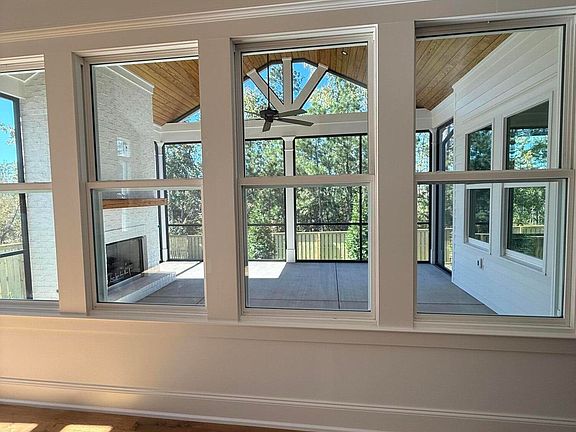 The main level offers a spacious primary suite plus an additional guest bedroom with private bath, while upstairs you'll find three guest bedrooms, each with its own en suite bath. The heart of the home is the gourmet kitchen with a large island, opening to the flex dining space and a generous great room with fireplace. Just off the great room, step onto the cozy rear porch—complete with a second fireplace—perfect for year-round entertaining.