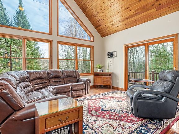 Welcome to your new paradise, be it your new home or recreational retreat! This stunning, turn-key property has it all and is hitting the market for the first time looking for its new owner. Quality built and well maintained from top to bottom, this 3 bedroom, 2 bath home was constructed by Wendt, a local builder, and no expense was spared from the Trex decking to the Pella windows. Nestled on 17 pristine acres with a breathtaking view of Little Popple River and ravine down below. Tucked up on the bluff, wildlife abounds as you drive up to your new piece of paradise. This home offers a large expanse of windows to view from the kitchen, dining area, living room, and loft. Amenities include cathedral tongue-and-groove cedar ceilings and a small freestanding fireplace to take off the chill. The loft has plenty of side storage and down below is a large family room with a walk-out basement to a patio. In the lower area you will also find another large bedroom, full bath, bonus room that could be used as an office or 4th non-conforming bedroom, and a very nice & clean utility room with all of the mechanicals. Property has a two-car attached garage to the home, with covered 8x36 porches on both sides, running the full length of the home. As a bonus, you also have another unattached 2 car garage with workbench with plenty of storage for all your toys, additional storage in the loft area above the garage, and bonus 24x12 sunroom/man-cave/bunkhouse for the kids that is completely finished, furnished, has a 8x24 covered porch, and is heated with a small free-standing wood-stove. Property includes a security system, central air, and Generac back-up system for the entire home. Truly a property that offers everything!