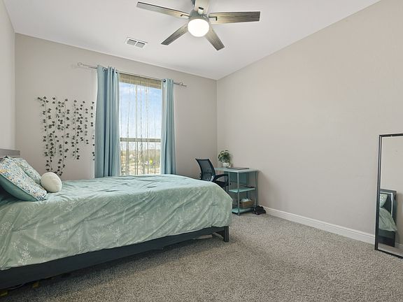 Situated on a desirable corner lot in Trails of Elizabeth Creek, this spacious home offers four bedrooms and three and a half bathrooms within a functional, open-concept layout. Zoned for the award-winning Northwest ISD, the home features a dedicated office with French doors, plus a separate downstairs workspace ideal for remote work or study. The living room includes built-in surround sound, with additional speakers on the back patio for outdoor entertaining. The kitchen is equipped with an upgraded oven and microwave, and the home is enhanced with modern conveniences including home automation, network outlets throughout, and a retractable storm door at the rear. Additional upgrades include a water softener, reverse osmosis system, and Tesla-ready charging capability. This property combines comfort, technology, and convenience in a highly sought-after community.
