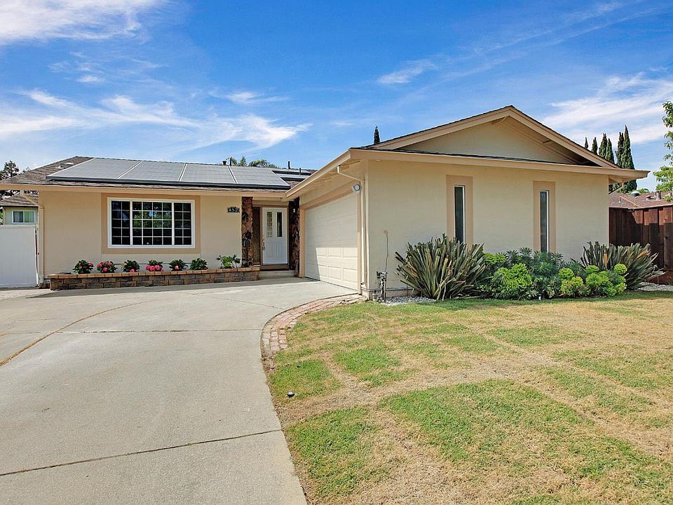 This gorgeous single family house is located at Milpitas with excellent school, beautiful mountain views. Newly remodeled gourmet kitchen with modern cabinets , slab countertop and pantry. All new stainless steel appliance. New bathrooms. New flooring. New water heater. Freshly painted inside and outside. New front landscaping. Lot of nature lights. Recessed LED lighting. Double-pane windows. Nice backyard with swimming pool for summer relaxation & entertainments. Solar system on property save you energy & bills. Refrigerator, washer and dryer included. Fantastic location! A few minutes away from shopping, restaurants, groceries and park. Convenient access to HWY 680, high tech companies and schools. Move- in ready condition. This is the home you have to see!