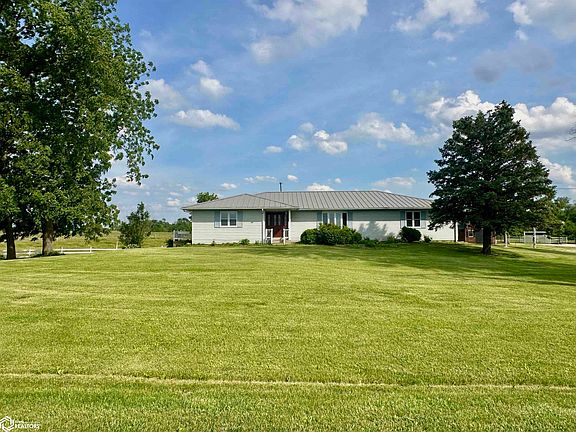 Nestled on a sprawling 5-acre lot, this charming 3-bedroom, 3-bathroom ranch offers a perfect blend of comfort and versatility. The main floor features three spacious bedrooms, including a primary suite with a master bath and a small private deck, ideal for morning coffee or unwinding in the evening. An additional full bath serves the other two bedrooms. The large eat-in kitchen, complete with a cozy breakfast nook, flows seamlessly into the dining room area, which boasts sliding glass doors leading to a generous deck overlooking the scenic acreage. The walk-out basement is a standout feature, opening to a patio area and providing additional living space. It includes three non-conforming bedrooms or office spaces, a second full kitchen, and a third full bath. This lower level also features a large living and entertainment area, perfect for hosting gatherings or creating a private retreat. Outside, the property is designed for relaxation and entertaining. A large pergola with fire pit and lighting creates an inviting atmosphere for outdoor get-togethers. The home also includes a 2-car attached garage, ensuring ample parking and storage space. Recent updates add to the home's appeal, including a new metal roof installed in May 2023. With natural gas service, this home eliminates the need for LP, offering convenience and efficiency. Embrace the tranquil country lifestyle with all the modern amenities in this well-maintained ranch home.