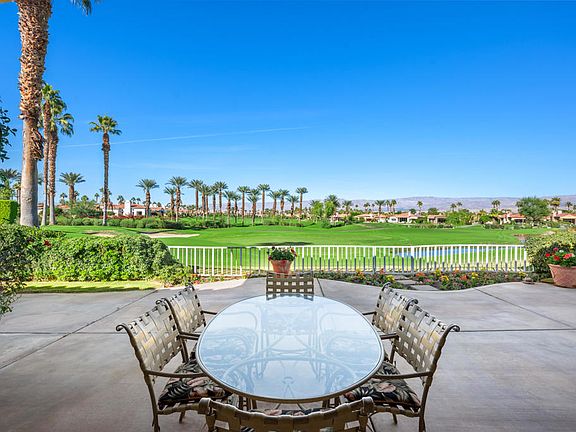 An Instant Classic! This amazing 15K+ sqft lot is one of the larger lots available at Indian Ridge CC in Palm Desert. Overlooking lake and straight over Arroyo #3 green, over green at Grove #17, uninterrupted views all the way way up Grove #16 to the tee box in the distance! See attached photo from 1995...the view in the photo is where this home was then built 3 years later, making it truly a piece of IRCC history! This popular Ocotillo 1G model has an open floor plan encompassing living room, wet bar & kitchen w/ breakfast nook which all open out to the patio & share those fabulous views! Fireplace & builtins are highlights of the living room, and the large wet bar with counter seating makes for a great entertaining home! Kitchen features granite countertops, island w/cooktop, walk-in pantry & counter bar w/seating. Bay windows highlight the breakfast nook, overlooking patio & views. Separate dining room accessible from kitchen, with french doors leading out to generous side yard 'rose garden' area w/ outdoor fireplace & seating. Primary suite shares those same views, & has private access to the patio. The ensuite bathroom provides granite counters, dual vanities and shower & tub. The 2 guest rooms are also en suite - one on either side of home. Off the front courtyard is the attached 1 bedroom, 1 bathroom Casita, currently used as an office. Attached 2-car garage + golf cart garage. Beautiful community pool & spa is just 1 house away! Turnkey Furn. CLUB Membership-no wait