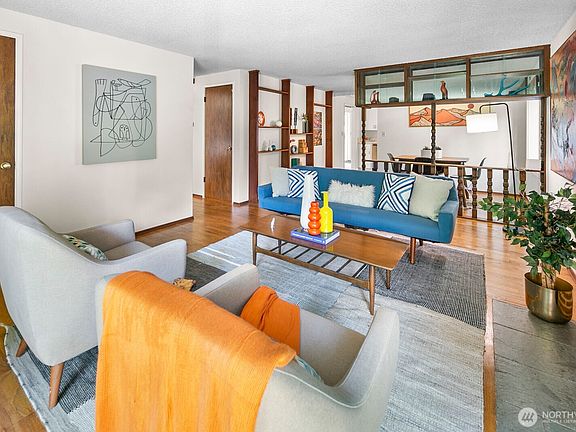 Park-side living and commuter ease converge in this 3-bed/1.5-bath 1956 North City rambler. Mid-century details and warm wood trim bring character and comfort. Living and dining space spill onto a lovely sunny patio, and two gas fireplaces create cozy gathering areas throughout. The fenced yard hosts twin outbuildings—one finished, heated, and wired for a studio or office, the other powered for storage or workshop. A north-side drive grants RV or boat parking plus an attached garage. Direct access to North City Park sits right next door, and the Shoreline North/185th LINK Light Rail station is only 0.7 miles away for rapid rides to UW and downtown. Cap the day with espresso at Café Dolce or live jazz at North City Bistro – a must see!