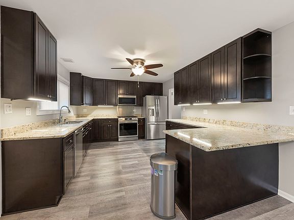 Welcome to this beautifully updated home offering an ideal blend of style, comfort, and functionality. Featuring an amazing open floor plan, this home is freshly painted in neutral tones with crisp white trim and doors throughout. New floors flow seamlessly across the main living areas, enhancing the bright and airy feel. The eat-in kitchen is a showstopper, boasting ceiling-height dark cabinetry with brushed nickel hardware, light granite countertops, stainless steel appliances (new July 2025), and Lifeproof vinyl flooring-perfect for both everyday living and entertaining. Additional highlights include: New furnace installed October 2025, Updated electrical system and Ceiling fans in all rooms for year-round comfort. Enjoy the comfort and cozy ambiance of the brick fireplace in the lower level. Fully fenced yard with a large deck (ideal for entertaining), concrete patio, and shed (2018). Located in a desirable neighborhood, this home is within walking distance to elementary and high schools, the Carol Stream Park District with fitness center, and Armstrong Park-perfect for biking or strolling once the weather warms up. Families will love the abundance of nearby parks and playgrounds, all just a short walk away. Conveniently close to shopping, restaurants, and expressways, this home offers the perfect combination of modern updates, thoughtful features, and unbeatable location.