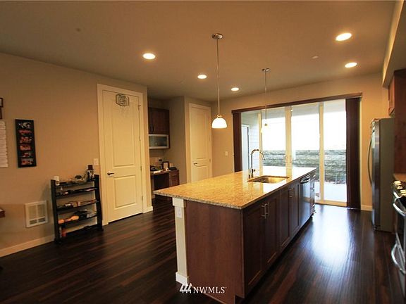 Gorgeous 2 bedroom townhouse located in Greenbridge neighborhood. Walk to local library, fitness center, cafe & much more. Newer townhouse which offers open kitchen to living room space, electric fireplace, nice concrete patio off kitchen w/storage space. Top floor offers 2 bedrooms, 1 3/4 bathroom, spacious primary with walk-in closet & 3/4 bathroom. Strict No pets. Parking - one off street parking space. Avail July 23, 2021