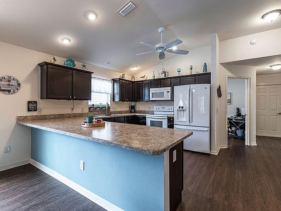 Welcome Home to Your Private Paradise in The Villages! Tucked inside the highly desirable & sought-after Amber Villas in the Beautiful and Popular Village of Charlotte, this beautifully maintained 3-bedroom, 2-bath Bonifay Model Courtyard Villa is the perfect blend of comfort, privacy, and low-maintenance living — and yes, it’s a dream come true for dog owners! Step through the screened front porch and into a light-filled open floor plan featuring luxury vinyl plank flooring throughout (no carpet), vaulted ceilings, and a spacious kitchen with ample cabinetry, pull-out shelving, pantry closet, and a breakfast bar — ideal for everyday living or entertaining friends. The primary suite offers direct access to the lanai and includes a walk-in shower, dual vanities, and a large walk-in closet. What truly sets this home apart is its fully fenced, completely private backyard — perfect for letting your pets run free in total safety. The glass-enclosed lanai extends your living space year-round, providing the ideal spot to relax, read, or enjoy morning coffee while overlooking your beautifully landscaped courtyard. Additional highlights include a whole-home NOVA water filtration system, an indoor laundry room, and a covered front entry that adds charm and curb appeal. Located in a quiet, pet-friendly neighborhood, you’ll enjoy maintenance-free living and quick access (by golf cart!) to all that The Villages has to offer — championship and executive golf courses, recreation centers, pools, pickleball, fitness facilities, and nightly entertainment at the nearby town squares. If you’ve been searching for a private, pet-friendly retreat with a glassed-in lanai, modern upgrades, and The Villages lifestyle at your doorstep — this is it.