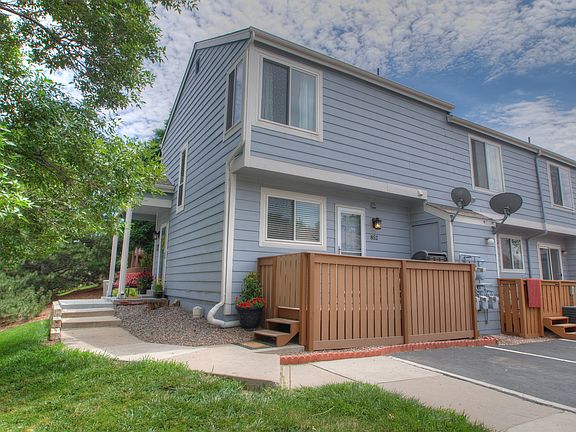 Great townhome in Highlands Ranch! 2 parking spaces right off the back patio. The main level boasts brand new laminate floors. Large Living Room/Dining Room open concept combo. Spacious Kitchen with SS appliances. Laundry and newly remodeled half-bath with beautiful tile and wainscoting on main floor. 2 floor boasts Master Bedroom window seat & 7x6 walk-in closet. Jack-and-Jill bath shared with 2nd bedroom. Move in ready! New AC unit, new windows, new water heater in 2012, Trex deck, all appliances and washer & dryer stay! No work to do when you own this easy-care end-unit Condo. Great Community, centrally located for shopping, schools and C-470. HOA covers access to all 4 Highlands Ranch Rec Centers!
