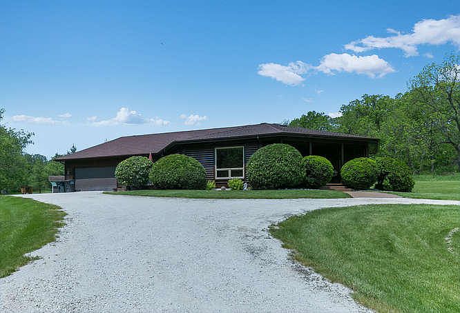 Bristol beauty, gorgeous log octagon ranch-style home on private 4.57 acres. Breathtaking living room with wood ceiling/skylights/stone fireplace-- wood burning stove insert. Extraordinary quality/design/condition. Basement has bedroom with egress window, family room, office area,1/2 bath, workshop and ample storage.Garage is 2-1/2 car, two garden sheds. See new Kenosha County new detached accessory regulations. Updates list in documents reports newer roof,furnace,central air, HWT, sump pump, windows, refrigerator,oven/range,dishwasher,garage door opener. Conservancy-2 zoning (beautiful woods and seasonal stream).Minutes to I-94 and Illinois.
