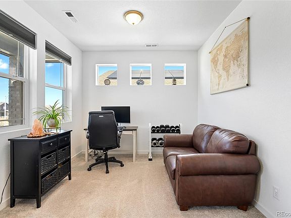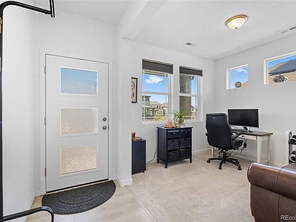 Welcome to 8520 Eckley Street, a clean, lightly lived-in home in the coveted Sterling Ranch community of Littleton. Priced to sell at $649,000, this well-loved 3-bedroom, 3-bathroom home offers incredible value with neighboring homes priced in the high $700s. Inside, you’ll find a thoughtfully designed floor plan with modern finishes and numerous technical upgrades, including solar panels and a tankless water heater for energy efficiency and long-term savings. A main-level office provides the perfect space for working from home—or can easily double as a playroom or in-home gym, depending on your needs. Enjoy your morning coffee on the covered front porch or unwind on the newly finished back patio perfect for family gatherings or entertaining friends. Sterling Ranch isn’t just a neighborhood, it’s a lifestyle. With access to parks, trails, pools, a recreation center, and year-round community events, it’s the perfect setting to put down roots.