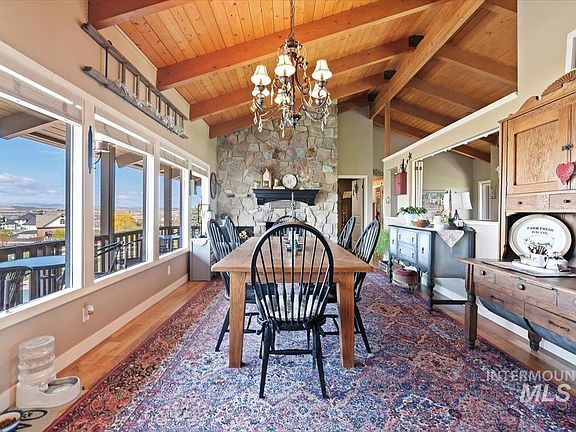 This stunning unicorn home offers two separate living spaces under one roof with solar panels! The main level features vaulted ceilings with beautiful wood planks, large windows with plantation shutters, and natural hardwood floors throughout. The great room includes a gorgeous stone gas fireplace, and the kitchen overlooks a spacious covered deck with recessed lighting, a hot tub, and breathtaking views of the valley. The main level also includes the primary suite, plus one bedroom, and a full bath. Step down into the 1,900 sq ft walk-out lower level, which exudes a cozy, country farmhouse feel with 3 bedrooms, a full bath, and another stone gas fireplace. The kitchen boasts a gas freestanding oven, copper sink, butcher block countertops, and shiplap backsplash. The lower level opens to a concrete deck and a sparkling swimming pool, perfect for relaxation or entertaining. This unique home combines charm, comfort, and style in every detail—don’t miss your chance to own this rare gem!