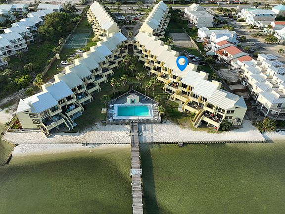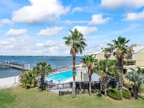 Luxurious unparalleled coastal beauty in Paradise awaits you! Swaying Palms, Gorgeous Waterfront Views, Boat Slip with 7500lb Boat Lift! Come live where others vacation! View Captivating Sunsets, Rare Townhome is a dream come true for anyone seeking a picturesque waterfront retreat. With its amazing sunset views and water vistas from every room, you'll feel like you're living in a postcard. The inclusion of a boat slip and boat lift makes it perfect for water enthusiasts, offering easy access to adventures on the water. Completely updated with $250k in upgrades this townhome features Custom hardwood Expresso cabinetry, large pantry with soft close pull out drawers; quartz counter tops in ALL bathrooms and kitchen. Kitchen features an Induction cooktop, convection oven, built-in microwave both with standard and convection options, warming drawer and 2 sinks and 2 disposals; Beveled quartz, indirect lighting; 3 ft wide countertop, Upscale large refrigerator, Lazy susan in the corner cabinets; Home has 19 travertine tile throughout; Upgrades include a tankless water heater, front load washer and dryer with custom cabinet enclosure and extra storage, Stairwell with landings are configured for and could be opened up for an elevator later if needed; Hurricane impact windows and doors on all levels; Neutral colors and shiplap add to the ambiance in rooms; Vaulted ceilings in master bedroom; Downstairs bedroom features Split unit, and hurricane door to patio to Pool! Remolded Full Bath has beautiful Tiled shower and upgraded lighting and fixtures; Middle level bedroom has pocket door to bath for convenience and beauty; Upstairs office suite includes MURPHY bed that doubles as a desk, LVP flooring and views to the Sound with custom UP/Down Blinds; Gorgeous views from the Master Bedroom and a deck for drinking that morning coffee or Sunset Drinks! Master Bath is totally renovated with Tiled shower AND relaxing garden tub; ADDITIONAL upgrades include: updated bathrooms with rimless glass, pocket doors, custom tiled showers, wireless lighting, High level countertops with two vanities in Master; Upstairs adjacent to the Master Bedroom is the captivating office suite; This room has a beautiful and functional Murphy Bed to give additional space for family and friends plus beautiful LVP flooring; Blinds are captivating with two directional levers; Lower level also has impeccable Bedroom Suite with Gorgeous upgraded Bath with Tiled Shower! Being sold furnished. Sound Front townhome with Panoramic views of the Santa Rosa Sound. You must see this unit to believe how great the Views are! The waterfront units rarely come open For Sale! A must see! Roof is 2005, but Metal for 30 year term; HVAC new after Sally 2020! Thanks for showing this showcase home!
