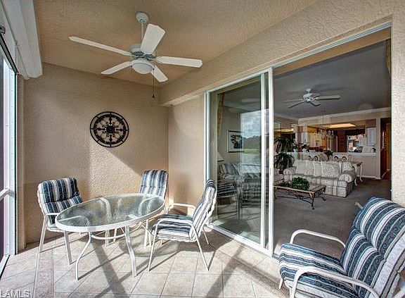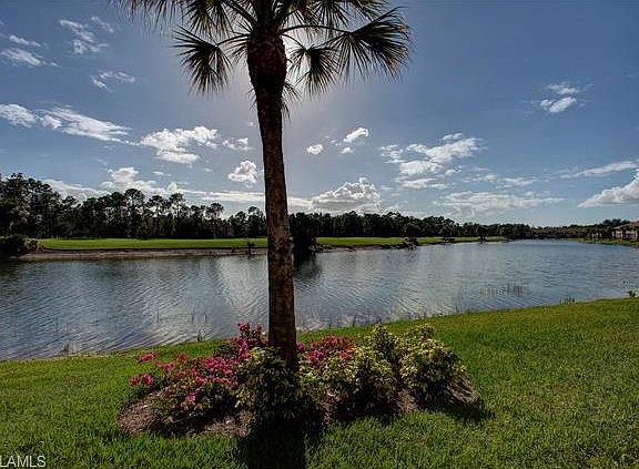 Absolutely stunning southern view. The lanai looks out over the lake, golf course, and preserve, creating a wonderful view with no homes. This Barrington model is offered turnkey and the furniture and decorating are tastefully done. Upgrades include electric storm shutters and crown molding. Recent renovations include window treatments, blinds, newly painted and faux walls, with wallpaper in all bathrooms. This Veranda design has both a front and rear Lanai and a single car detached garage. The garage has been modified and has attic storage available with pull down stairs. It is a short distance to your own satellite pool and tennis court. Located close to downtown Naples, shopping, dining, and the beaches, make this a wonderful unit for vacation living. Golf is included with this home and membership includes access to a newly renovated clubhouse, resort pool, tennis, bocce courts, and fitness center.