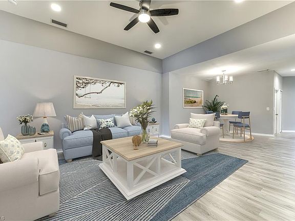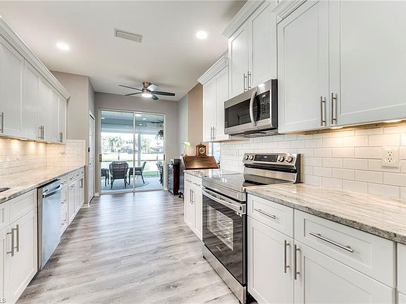 Experience the ultimate in country club living in this FULLY RENOVATED attached villa, designed to feel like a single-family home. Relax on the expansive lanai and take in STUNNING LAKE VIEWS, and watch golfers play with the rare privilege of using their own private golf carts. This 2-bedroom plus den, 2-bath home comes with full EXTERIOR MAINTENANCE, so you can spend your time making memories—whether that’s meeting new friends or hosting old ones at the Estero Country Club. There, the atmosphere is as inviting as the community, where everybody knows your name. Estero Country Club features 18-hole Gordon Lewis championship golf course, 6 pickleball courts, tennis, bocce, 24/7 fitness room, multiple dining venues, and a variety of social events. RECENT UPDATES include a new roof, gutters, pavers, interior and exterior paint, hurricane shutters, a new garage door opener with key pad, an updated kitchen with granite countertops, stainless appliances, and cabinetry with soft-close drawers. The bathrooms have also been updated, the lighting has been upgraded, and the home boasts new neutral plank laminate flooring and tile throughout. All this home needs is YOU!