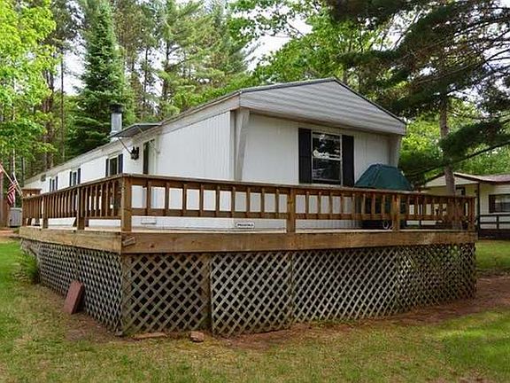 PATRICIA LAKE MOBILE - A big lake view, a big deck for entertaining, a big pier for fishing off or watching the wildlife and catching the day's sun. Two storage sheds and a 3 BD 1 BA home with a wood burning fireplace and water filter system that produces fabulous drinking water and a seller that's been blessed to make many a memory! Now it's your turn! Patricia Lake Mobile Park is one of the few parks on water and it's in Minocqua! Get that awesome north woods feel but your minutes to anything you could need or want! Great fishing, water is high, so start making your dreams come true with this affordable investment!