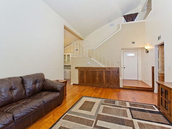 This property is listed at a value range of $429,000 to $449,500. Well maintained & upgraded home including wood floors, solar, backyard turf, fire pit, A/C unit, furnace, hot water heater, finished garage, upgraded bathrooms & so much more! This home has 2 bedrooms upstairs & 2 bedrooms downstairs. Vaulted ceilings add volume to the already large living room area and unique built in touches such as a sliding gate to block the stairwell will convey!