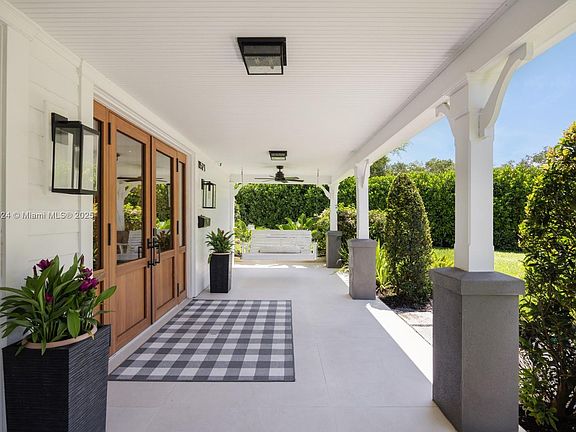 Beautifully renovated modern farmhouse in North Palmetto Bay, set on a quiet tree-lined cul-de-sac. This 5BR/4BA home features vaulted ceilings, a split floor plan, and elegant porcelain and wood floors. The chef’s kitchen includes quartz countertops, a spacious island, premium appliances, and a 48” gas range. The primary suite offers a spa-like bath, walk-in closet, and private office. Outdoors, enjoy a fenced backyard with mature trees, gazebo, and pool surrounded by timeless Chicago brick—an inviting retreat for South Florida living.