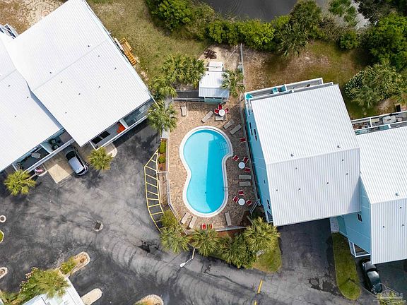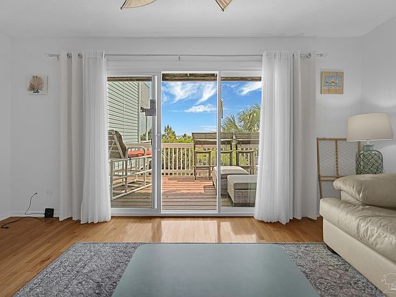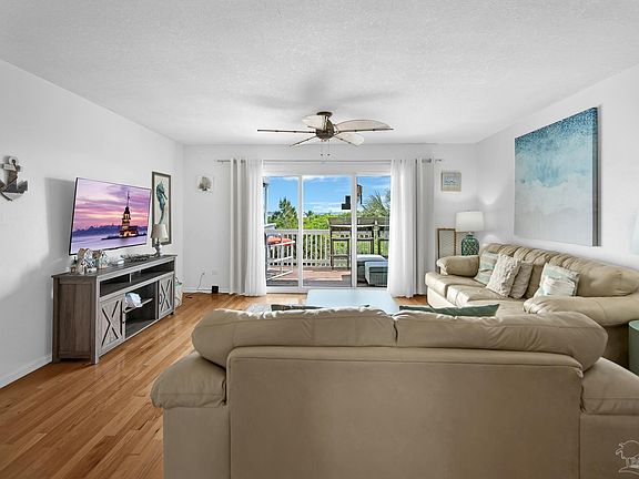 One of the lowest priced 2 bedroom options on Navarre Beach with Water Views from Every Room | Low HOA | Short-Term Rentals Allowed-Experience the ultimate coastal lifestyle with this beautifully maintained townhome nestled perfectly between Navarre Beach and Santa Rosa Sound. Enjoy breathtaking water views from every room, with three private balconies offering front-row seats to vibrant sunrises and playful dolphins in the distance. Boasting a 2024 roof, newer HVAC and water heater, this home is truly move-in ready and low-maintenance. The spacious, sunlit two-story layout features an open-concept main floor perfect for entertaining, and a covered lower-level deck with BBQ grill—an ideal setup for family gatherings or relaxing after a day on the water. Upstairs, you'll find two private bedrooms separated from the main living space- ensuring peace and quiet. The kitchen includes a breakfast bar, coffee nook, and updated backsplash, seamlessly flowing into the living area and out onto a second-floor balcony. Take a short stroll to the private neighborhood dock for fishing, paddleboarding, or a refreshing dip. The heated community pool reserved for residents only is just steps away. Access Navarre Beach and local favorites like Juana's Pagodas easily by golf cart for dining, live music, and family fun. With a low HOA that maintains the grounds year-round and allows short-term rentals, this property offers both lifestyle and investment potential. Whether you're seeking a primary residence, vacation retreat, or income-producing rental, this townhome delivers.
