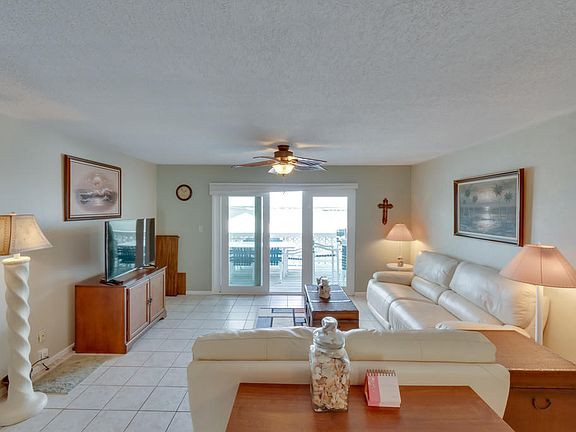 Enjoy the Florida life style at its best.Awesome waterfront listing on beautiful Navarre Beach. This unit is a boaters dream your steps from the private dock with boat slips. Boat launch is just a block away.This unit is in great shape, owner is very proactive and takes great pride in it.There are 12K in high impact door and window upgrades. New window treatments. All appliances convey, including washer and dryer (new) fully furnished and move in ready .New bathroom fixtures and vanities. Three balconies water side two with phenomenal views of the intra-coastal (sound). Breathtaking sunrises and sunsets, watch boats and barges traverse up and down at night. Perfectplace to watch the Regattas from.Choose this as your new home.deck furn. , shells , and dishes do not conve