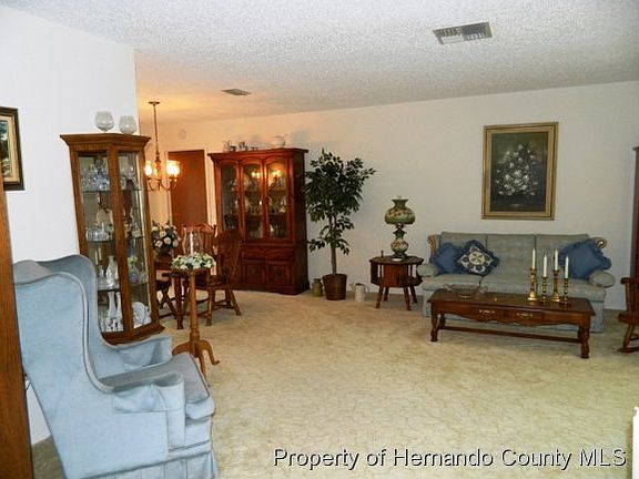 Active with contract Home features an open floor plan. True three bed room split plan tax records incorrect. Master has a sitting area and cedar lined walk in closet and Master bath with a tile shower. There is a living room dining room combination, family room, kitchen with breakfast bar. The lanai is screened in including a sun room area also screened overlooking the back yard. The garage has extended sides and includes storage cabinets. Some furnishings are available separate from sale.