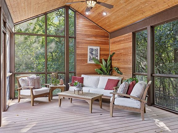 Experience the perfect harmony of elegance, innovation, and nature in this secluded 1.5-acre wooded estate nestled between Anderson Lake, Bush Lake and the 1,100-acre Hyland Lake Park Reserve. Crafted with Venetian plaster walls, Bolivian rosewood floors, and freshly painted interiors, every space radiates timeless sophistication. The chef’s kitchen, equipped with Wolf and Sub-Zero appliances, a massive honed granite center island, and a butler’s pantry, sets the stage for inspired entertaining. A main-floor office provides a refined workspace, while the lower level offers a home theater, wet bar, fireplace, and guest suite with private bath and walkout to a flagstone patio. Enjoy effortless indoor-outdoor living with a summer screen porch and expansive deck overlooking a gated, pet-friendly backyard with abundant wildlife. Each upper-level bedroom features its own bath, and the primary suite boasts a spa-inspired ensuite with heated floors. Exquisite smart home with solar panels, EV charging, and proximity to MSP International Airport, this prestigious West Bloomington estate blends luxury, privacy, and convenience.