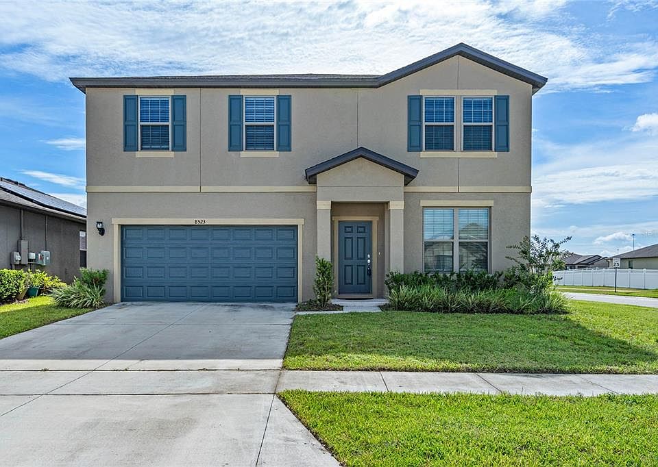 Great Opportunity Awaits on this 2021 built 5 bedroom and 3 full bath home. Why worry about insurance on an older home when you can have a 2 year old roof, HVAC and everything else! Open floor plan with huge solid surface center island counter, solid wood cabinets with crown molding all complimented with a stainless steel appliance package. Spacious family room plus 1 full bed and bath downstairs. Upstairs you will find the master suite with a double sink vanity, shower and walk in closet. 3 additional secondary bedrooms plus a loft/bonus/game room. All situated on a beautiful corner homesite with a partial water view. Location benefits include easy access to I4 to Orlando, Lakeland & Tampa, Disney and much more! 5 minutes from both Amazon and Best Buy's distribution centers