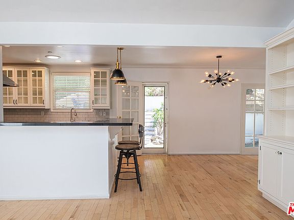 Tucked away on a peaceful and scenic Hollywood Hills Canyon Road, this stunning traditional-style home radiates charm and character. Featuring an open floor plan with vaulted ceilings, a modern kitchen with a breakfast bar, a cozy dining area, a fireplace, hardwood floors, and French doors that lead to a tranquil rear garden with terraced hillside views. The inviting home offers 3 bedrooms, 2 full bathrooms, a den (potential 4th bedroom), and a laundry room. The spacious master suite with soaring ceilings, complete with a luxurious bath with a jetted tub and a private office/flex space, occupies the second floor and opens to a generous wrap-around patio ideal for relaxing in the serene canyon surroundings. Additional highlights include an EV charger, Nest Thermostats, Ring doorbell, new washer/dryer, Culligan saltwater softener, retractable awning off the master, skylights, tankless water heater, storage room, and three private parking spaces - one oversized. Freshly painted, remodeled and located within the Wonderland Avenue Elementary School district, this home is a true oasis! 13-month Term minimum - no exceptions