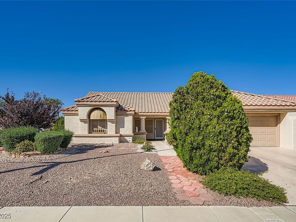 Single-story San Marino model in desirable Sun City Summerlin. This 2-bedroom, 2-bath home features an open, comfortable layout with manmade wood and tile flooring for easy care. Ceiling fans with lights throughout, new furnace, water softener, and updated sinks and faucets. The low-maintenance yard with mature shrubs offers easy upkeep and great curb appeal. Located in one of Las Vegas’ most popular 55+ communities with access to golf courses, pools, fitness centers, social clubs, and more. Move-in ready and well maintained—perfect for relaxed Sun City Summerlin living.