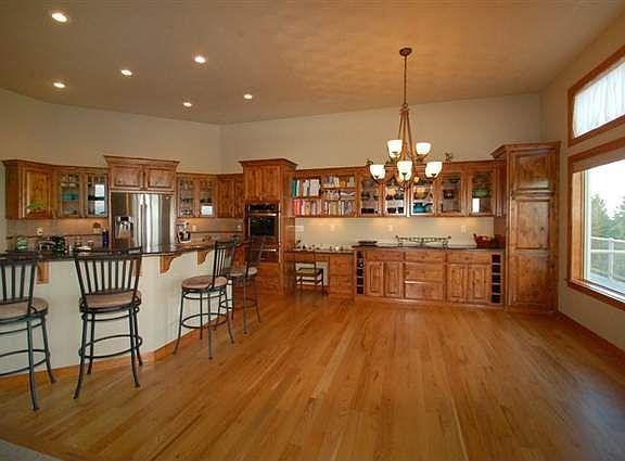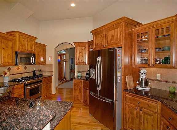Incredible Views! Over 4000 sq ft of finished living space that includes amazing finish work. Slab granite countertops w/ eating bar, Knotty Alder Cabinets, addit'l custom cabinets in the dining area, , built in oven w/warming drawer, and under cabinet lighting. Private deck off of the master & reinforced for a hot tub. Basement has 9' ceilings and a HUGE open space for an awesome game room or movie area w/wet bar and mini fridge. Fully finished garage w/work bench & tons of cabinets!