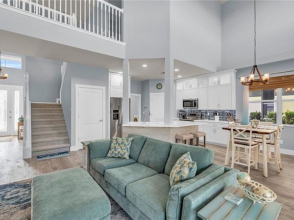 CREDIT OF $10,000 TOWARD BUYER'S CLOSING COSTS. Welcome to this upgraded, fully furnished pool home in the highly desirable gated Southwind community in Fort Myers—just minutes from beaches, shopping, and dining. Blending modern design with a prime location, this beautifully renovated 4-bedroom + den, 3-bathroom home offers over 2,400 sqft of stylish living space and a 2-car attached garage. Inside, you’ll find an open, split-bedroom floor plan with brand-new vinyl flooring throughout the main living areas, new carpet in the bedrooms, and updated tile in the bathrooms. The spacious primary suite is located on the first floor and includes a designer accent wall, walk-in closet with custom built-ins, and a fully remodeled ensuite bathroom featuring dual sinks, quartz countertops, soft-close cabinetry, and a retiled walk-in shower. A large den on the first floor provides flexibility for a home office or possible fifth bedroom, accompanied by a remodeled half bath for added convenience. The stunning kitchen has been fully upgraded with all-new soft-close cabinets, quartz countertops, under-cabinet lighting, a walk-in pantry, and new stainless steel appliances—perfect for both everyday living and entertaining. Upstairs, discover three spacious guest bedrooms and a generous loft/game room, ideal as a second living area or play space. The home also includes updated light and ceiling fan fixtures throughout, as well as ample storage space. Major updates ensure peace of mind for the new owner: a brand-new A/C unit (less than a year old), a new tile roof (less than a year old), and a new water heater. Step outside to your private backyard oasis, complete with a newly resurfaced pool and spa, new pool deck, updated screen enclosure, and a new pool heater and pump. The extended lanai offers the perfect place to unwind or entertain, all in a peaceful, resort-style setting. This move-in-ready home offers a rare combination of luxury, convenience, and comfort. Don’t miss the chance to make it yours—schedule your private showing today and come see what makes this Southwind gem truly exceptional!