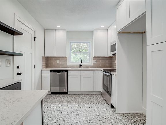 Welcome to this beautifully updated 3-bedroom, 2-bathroom ranch home nestled on a tree-lined street just minutes from the popular, historic downtown Overland Park. With thoughtful renovations throughout, this move-in ready home blends classic charm with modern convenience. Outside you will find a new roof, new exterior paint, and new patio. Step inside to find all new interior paint, thermal windows, lighting, ceiling fans, and LVP. The original hardwood floors have been restored. The fully remodeled kitchen features brand new cabinetry with soft close drawers/cabinets, quartz countertops, new stainless still sink, fixtures, and appliances and a stylish coffee bar. The primary bathroom has been completely renovated to offer a walk in shower, while the hallway bathroom showcases modern finishes and functionality. Additional updates include new interior craftsman style doors, trim, and back door, as well as updated electrical and plumbing systems throughout the home. Relax or entertain in the spacious, fenced backyard or sit out front on the patio. Basement foundation work was completed earlier this year and monitored. It comes with a 20 year warranty. Located near top-rated schools, popular restaurants, shopping, and all the amenities of downtown Overland Park, this home offers the perfect blend of comfort, style, and location. Don’t miss your chance to own this turn-key gem—schedule your showing today!