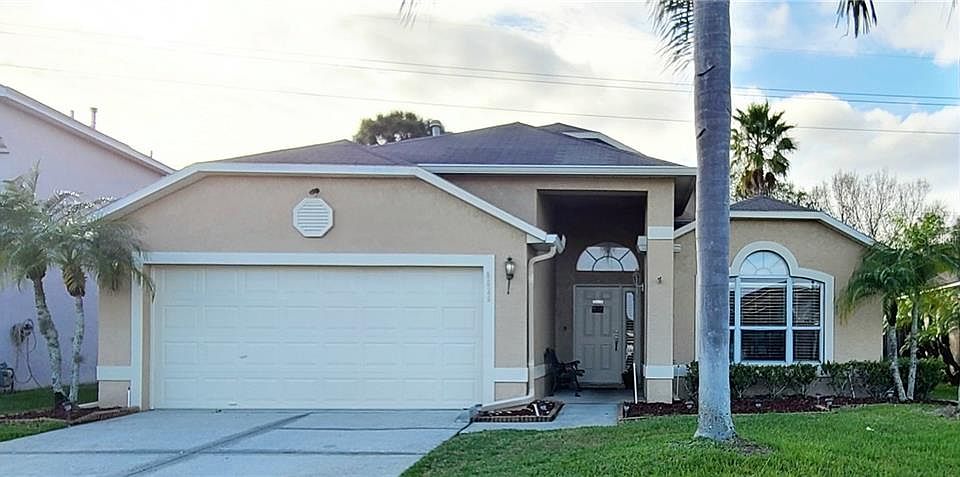 Looking to move up? This home is inviting and functional, with a thoughtfully designed layout. You are welcomed in though an entry that puts YOUR needs first. Utilize your immediately accessible laundry room, to disrobe shoes and/or necessary garments, after a day at work or an afternoon at the beach. Tranquil simplicity, with a touch of class. Hardwood floors throughout, make clean up easy breezy. Lux without the fuss. Solid wood cabinetry and beautiful, "no expense spared", granite countertops are elegant and transitional, giving you unlimited freedom to mix and match décor pieces, to really personalize your living space. A true split floorplan offers the head-of-household privacy, while retreating to the owners suite, complete with ensuite bath, boasting a closet truly vast enough for a pair. The family room, seamlessly separate from the dining room, allows effortless entertaining. A gorgeous breakfast bar overlooks the kitchen, perfect for including company while preparing meals, serving buffet style, or conversing over a cup of coffee. Your kitchen is efficient, with abundant cabinet and counter space, and includes an eat-in-area with a large window, allowing sunrise views to pleasantly start your day. Volume and vaulted ceilings make this entire home open and airy. Convenient access, to the screened lani, through the guest bath or from sliders exiting the owners suite or living room, opening to your private backyard with a natural wooded view. In addition to all of this, all major home maintenance items have been replaced, giving peace of mind to your purchase. Hot water heater and A/C compressor and handler are 3 years new, roof 2021 (in progress), and fresh interior/exterior paint. Community hosts a clubhouse, pool, and playground, for resident use. This family friendly community is close to everything and far from nothing, including county trails, parks, and golf courses, malls and restaurants, beaches and attractions, sport venues and entertainment, and TPA. What are you waiting for? Don't miss this opportunity. Your new home is awaiting your arrival. Schedule your showing right away.