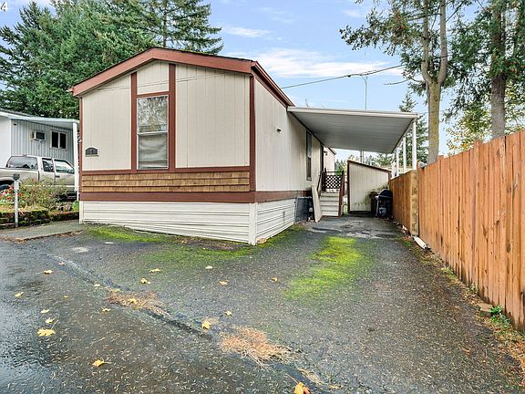 Cozy single wide manufactured home in a central location! Come enjoy this 2 bed, 1 bath, 672sqft home with an open concept layout. Home offers large recently remodeled kitchen, spacious living room perfect for entertaining, guest bed that could be used as an office space, laundry area, full bath, and large primary. Outside you have a large back yard perfect for outdoor activities or summer BBQ's and a storage shed. Space rent is $1,195/month. Covers garbage, sewer & water.
