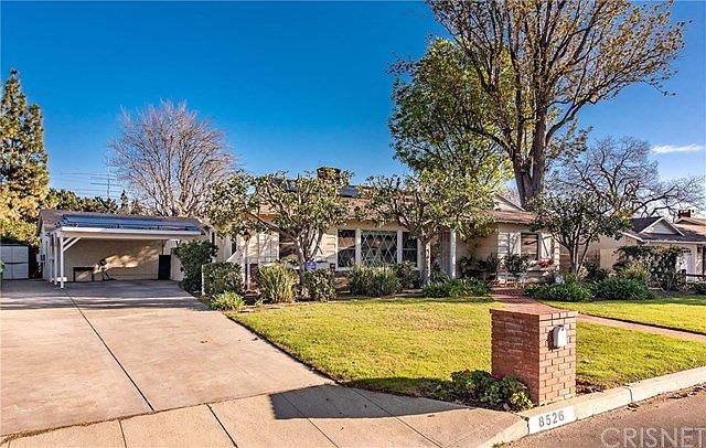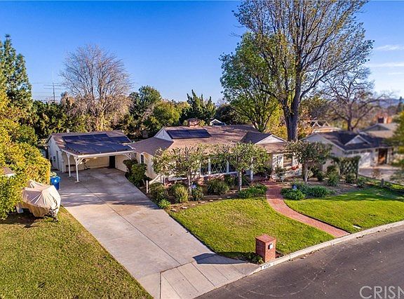 Super Charming Winnetka Ranch Style Single Story Located on a Beautiful Street and on an Expansive and Deep 16,860+ Sq. Ft. Lot! This Light Filled Home offers 3 Bedrooms (Den is 4th Bedroom on title), 3 Baths, Over 1900 Sq. Ft. of Comfortable Living Space with Gleaming Wood Floors, Wood Beamed and Smooth Ceilings, Crown Moldings, Dual Paned Windows (Some Double Hung), a Cozy Brick Fireplace and Wet Bar in the Living Room, and a Remodeled Kitchen (2011) with Center Island, Deco Designer Glass Backsplash and Tons of Cabinet Space. Master Suite with Large Mirrored Wardrobe, French Doors, Recessed Lighting, and Private Bathroom. Secondary Bedrooms and Hall Baths are Ample Sized. Separate Guest Unit/Pool House is Great for Extended Family, Home Office, Gym or?? and Boasts Living Area, Kitchenette, Dining Area, Bedroom, Bathroom and Private Patio Deck. Entertainers Rear Yard with Sparkling Pool, Patio, Basketball Hoop and Large Grassy Area. Additional Amenities Include: Central Air & Heat, Copper Plumbing, Fully Owned and Cost/Energy Saving Newly Installed Solar Panel System, Newer Roof, Updated Electrical Panel and Wired for Electric Car Charging Station, plus 2 Car Carport with Plenty of Room for RV/Boat Parking! This one is a Winner!