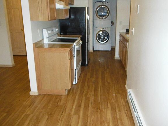 These are beautiful spacious units! 1,120 sq feet, three bedroom, two bath with master bedroom and bathroom, covered back deck and garage. Garage has new doors and refurbished floor. Building has been remodeled inside and out, including newer washers and dryers and exterior paint job this summer. Condo dues include heat. One dog under 50 lbs or two cats allowed upon approval. Ground level, no stairs.