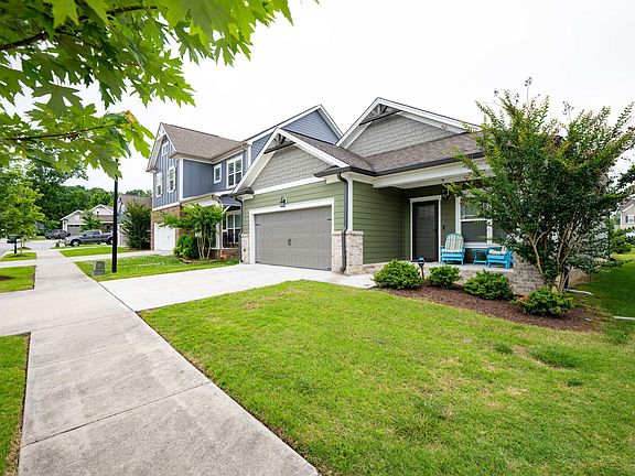 This charming 3 bedroom, 2 bathroom house in Creekside at Hampton Meadows offers 1728 square feet of comfortable living space, all on one level. The home features an inviting open floor plan, perfect for modern living and entertaining. As you enter you will notice the beautiful wood flooring and moldings that extend throughout the main living areas adding warmth and elegance to each room. The beautiful kitchen offers a tile backsplash, granite counters, pull out drawers in the lower cabinets, under cabinet lighting, and a large island that can fit 4 stools. The great room has a double tray ceiling and a gas log fireplace. From the family room, you can access the rear patio which has a retractable awning with a wind sensor which will automatically retract the awning in high winds. The master bedroom has a large ensuite bathroom with granite counters, a tile shower with a bench, and a custom closet system. The neighborhood features a pool, a splash pad, and sidewalks. This residence combines the convenience of single level living with a vibrant community atmosphere making this the perfect place to call home!