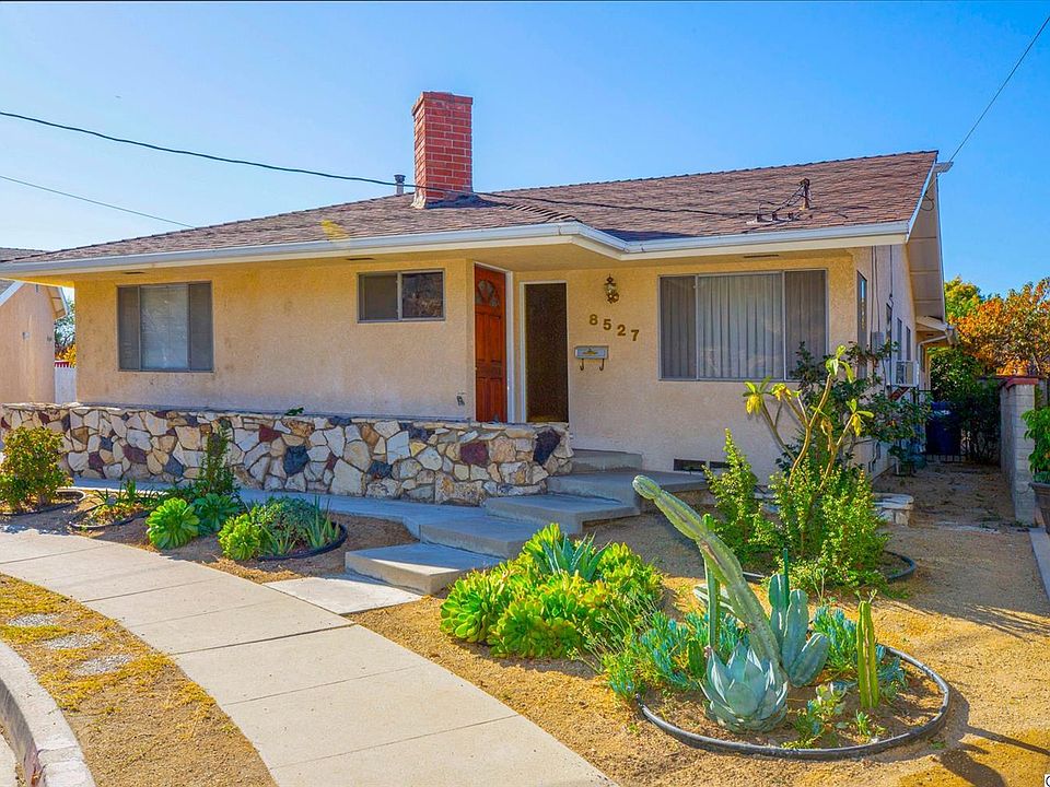 Charming Mid-Century Home located in the Glencrest Hills area of Sun Valley above Glenoaks on a quiet Cul-de-sac. The front yard features draught tolerant California Landscaping. The Living room and Dining room have an open floor plan and features a Grand Rock fireplace with a raised hearth. In the large eat-in kitchen there are built-in appliances. The Master Bedroom, with a nice oversized bathroom, is in the back of the house and overlooks the covered back patio. 2 more Bedrooms and 1 Bath are located off the the living area. The separate Laundry room has access to the side yard. In the private backyard there is a covered patio and an open side patio with lots of room for relaxing and entertaining. The 2 car garage is oversized, it was extended lengthwise.