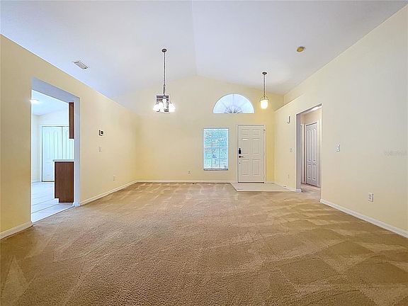 Welcome home to the highly sought-after Carriage Point Community! This charming 3-bedroom, 2-bathroom residence offers the perfect blend of comfort, space, and modern convenience. From the moment you step inside, you’ll be greeted by soaring vaulted ceilings and an abundance of natural light that fills the open living spaces. The spacious kitchen is ideal for both everyday living and entertaining—featuring generous counter space, plenty of storage, and a seamless flow into the dining and living areas. A second living room provides extra flexibility, perfect for a home office, playroom, or cozy media space. The primary suite is your own private retreat, complete with a walk-in shower, a separate soaking tub, and a tranquil atmosphere that invites you to unwind at the end of the day. Step outside to your large, fully fenced backyard, where you can relax on the screened lanai, enjoy outdoor dining, or take advantage of the detached shed fully powered—ideal for hobbies, storage, or a small workshop. Recent updates include freshly painted main living space, newer roof and Trane HVAC system, irrigation system fully serviced with new sprinkler heads and freshly landscaped exterior! Living in Carriage Point means access to incredible resort-style amenities, including a sparkling community pool, fitness center, basketball and tennis courts, two playgrounds, walking trails, and even a dog park just a few doors down—perfect for your four-legged family members! Located just minutes from shopping, dining, and entertainment, with easy access to I-75, this home offers a lifestyle of convenience and comfort in one of the area’s most desirable neighborhoods. Don’t miss the opportunity to make this beautiful home your own—schedule your private tour today!