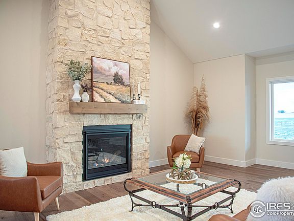 Experience the best of Colorado country living in this stunning custom-built home, perfectly positioned on 4 private acres at the end of a quiet cul-de-sac in Nunn. Built in 2025, this home combines modern comfort with peaceful rural charm, offering breathtaking mountain views and front-row seats to both serene sunrises and spectacular sunsets. Boasting 4,300 total square feet with 2,150 finished, this thoughtfully designed 3-bedroom, 3- bath home features an open-concept floor plan with 9-foot ceilings, expansive windows, and rich hardwood floors throughout. The living room centers around a gorgeous stone fireplace, creating a warm and inviting atmosphere perfect for entertaining or relaxing. The chef's kitchen is outfitted with high-end Bosch appliances, including an induction cooktop, counter-depth refrigerator, microwave/oven wall combo, and dishwasher. The primary suite offers a luxurious spa-like bath with elegant finishes, while the Jack-and-Jill bathroom connecting the two guest bedrooms adds both convenience and style. Additional highlights include a tankless water heater, an unfinished basement ready for future customization, and a domestic well for self-sufficient living. Enjoy wide-open spaces, privacy, and sweeping views-all within an easy drive to Wellington and Fort Collins. Don't miss your chance to own this modern country retreat-a perfect blend of craftsmanship, comfort, and Colorado beauty.
