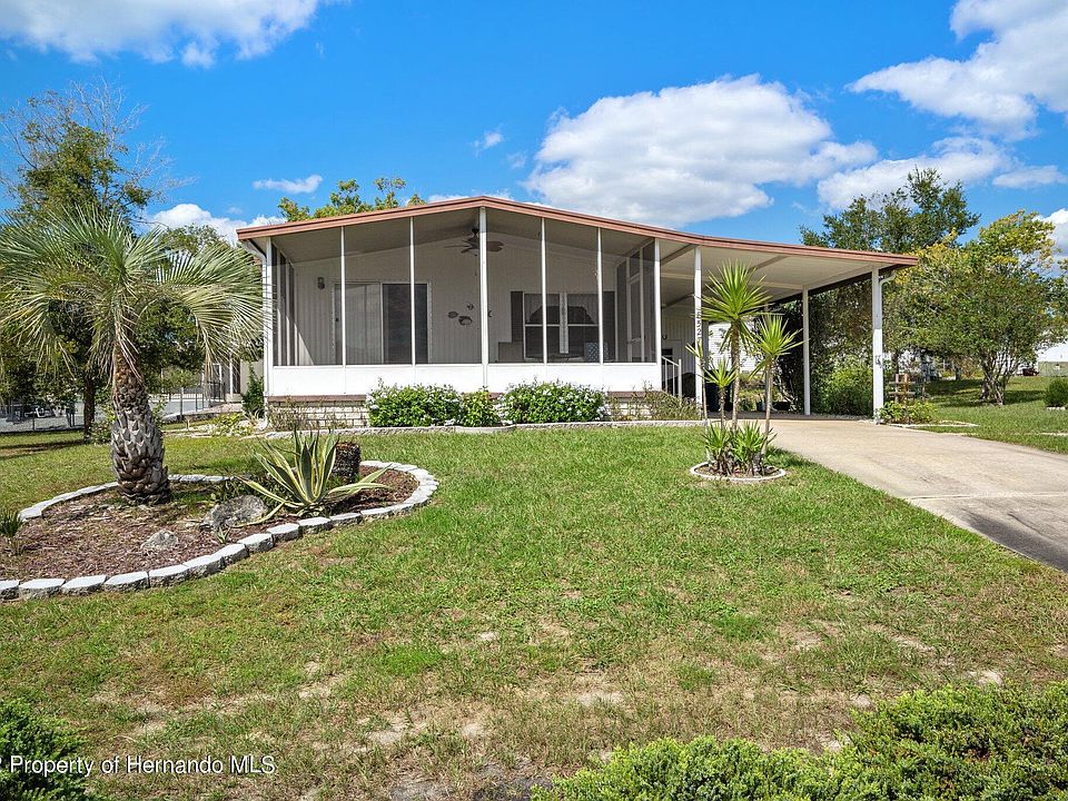 Welcome home to this great 55+ community where your cozy new home is waiting for you. This 2/2 with a large Florida room where you can spend the day enjoying your Florida dream life. Both bedrooms have walk in closets with master having its own bathroom. This home comes with Hurricane shutters to protect your piece of heaven from the elements. Located in GATED 55+ community where you OWN YOUR OWN LAND and enjoy amenities like heated pool, tennis, golf course, shuffleboard, community center and lots more! DON'T MISS OUT! MAKE IT YOUR OWN!!!