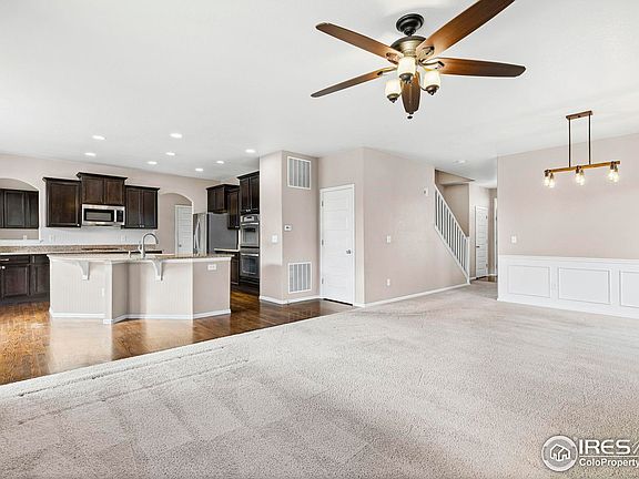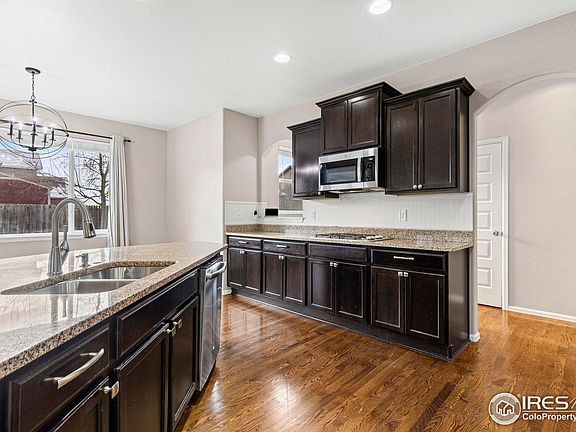 Experience the perfect blend of location, comfort and style in this stunning 4-bedroom, 3-bathroom home located in the sought-after Raspberry Hill community. Boasting over 3,500 total square feet, this house features an inviting light, bright and open-concept floor plan accented by rich hardwood floors and abundant versatility. The gourmet kitchen is complete with a large central island, premium cabinets, a gas range, and double ovens-perfect for gatherings. Retreat to the very spacious primary bedroom, the backyard patio or just relax and enjoy the quiet of this well designed space, and the feeling being away from the hustle. The expansive 3-car oversized garage provides ample storage for vehicles and gear. Outside, the professionally landscaped yard is fully fenced and features a functional sprinkler system and a private patio for summer BBQs. Nestled on a quiet street with easy access to local parks and walking trails, this meticulously maintained 2-story home offers modern living at its finest. Don't miss your chance at a home that is close to every amenity, central to Denver and Northern Colorado, minutes from Longmont and still feel like you're away from it all.