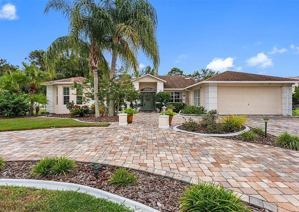 Welcome to this country estate retreat that blends timeless elegance with everyday comfort. Meticulously maintained and beautifully landscaped, this residence is framed by a brick-paved circular driveway, lush mature greenery, and enhanced landscape borders accentuated at night by beautiful exterior lighting that makes this home glow. The grounds and gardens remain vibrant year-round with the easy care sprinkler system, while the backyard transforms into a true outdoor sanctuary you’ll just love. The screen-enclosure is enhanced with brick pavers and pool with a fountain that sparkles as the centerpiece of this private retreat. The outdoor oasis is complemented by an outdoor shower, gazebo, custom BBQ grilling station, and sun shade making a perfect space for both serene afternoons and lively gatherings. Inside, the home opens to a grand entryway where elegant travertine tile floors and natural stone accents set a tone of sophistication. The expansive living area is welcoming with natural light, gas fireplace, and French doors leading to the pool and scenic backyard views. The great room really makes a statement with a vaulted ceiling, skylight, stone accent fireplace, and refined mantle. The kitchen is a chef’s delight, featuring granite countertops, upgraded dual sink with filtered water, under-cabinet lighting, accent molding, and a bright breakfast nook overlooking the pool. The spacious master suite offers the perfect blend of luxury and privacy with his-and-hers walk-in closets and a spa-like en-suite bath complete with dual sinks. Whether beginning or ending your day, this elegant retreat ensures comfort and serenity. The third bedroom is ideal for guests or multi-generational living, featuring its own private access door to the pool and lanai—a rare setup that makes it perfect for use as an in-law suite or private guest quarters. The fourth bedroom (currently used as an office) provides even more flexibility, with two closets, upgraded lighting, extra storage, and a nearby third bath. Additional thoughtful features include integrated blinds on all exterior doors, ADT security, inside laundry with washer and dryer, and a fully fenced backyard with extra storage shed. This property is more than a home—it’s a lifestyle, offering a rare blend of elegant finishes, versatile living spaces, outdoor enjoyment, and tranquil country surroundings, all wrapped in timeless curb appeal.