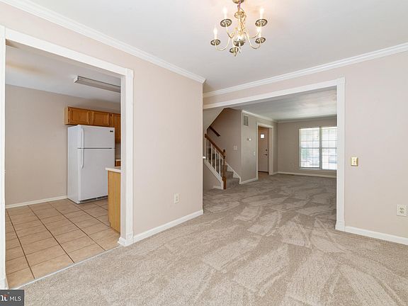Three-level townhouse in Silver Farm-West neighborhood with a covered front porch. This home has 3 bedrooms & 3 1/2 baths. Great natural lighting throughout main and upper levels. Living room/dining room combination. Kitchen has pass through 'window' to the living area. Sliding doors off the dining room lead to a deck that's great for entertaining. Since the home backs to a wooded area, deck is great for relaxing too! Kitchen has a nice pantry plus room for a breakfast table. Nice size master bedroom has walk-in closet and its own full bathroom. Two other bedrooms on upper level share a full size bathroom. Lower lever has large family room, full bathroom, and laundry/storage area. Crown molding in main and upper levels. Brand new carpet throughout house. House iocated close to The Avenue at White Marsh, with easy access to Routes 695 & 95. Come see and make this your next home!. Got brand new Heating and cooling system.(2023)