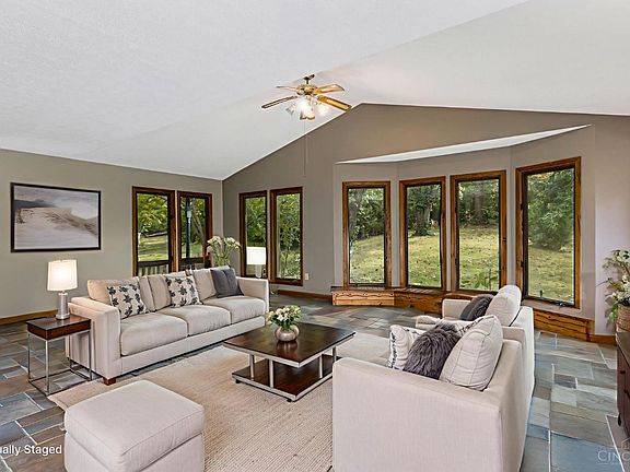 Discover peace and tranquility just 20 minutes from downtown. This updated 3 bedroom, 2 full bath tri-level nestled on almost 10 scenic acres with meadows, woods, and a pond. Perfect for horse enthusiasts, featuring a bank barn w/2 stalls, 70-ft riding ring, and plenty of fenced pasture. Inside, enjoy a modern kitchen, stylish baths, and a cozy family room with wbfp. Attached 2-car garage & oversized detached 2-car garage w/studio. The property consists of 3 parcels including a 4 acre buildable lot.