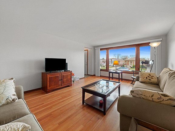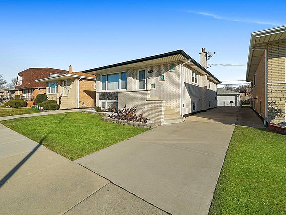 Highly sought after Jumbo Raised Ranch with side-drive! Lovingly maintained and updated over the years. The first floor with hardwood floors throughout features three bedrooms, one full bathroom and a half bathroom, a cozy living room, a kitchen with oak cabinets, and a dining area. The massive full basement consists of a family room, one bedroom, and laundry area. Two car garage and a driveway await you outside along with a stamped patio. This home has been meticulously maintained by long-time owners. Great location near all the amenities - Schools, Parks, Shopping, Public Transportation, Medical Facilities & Midway Airport.