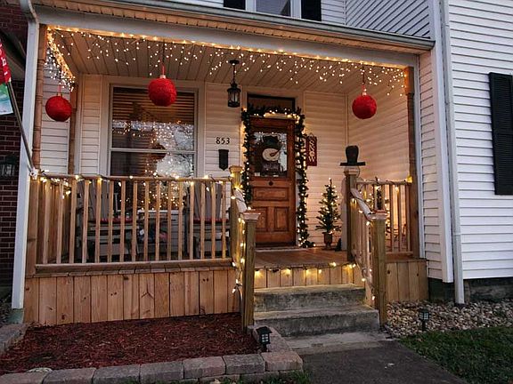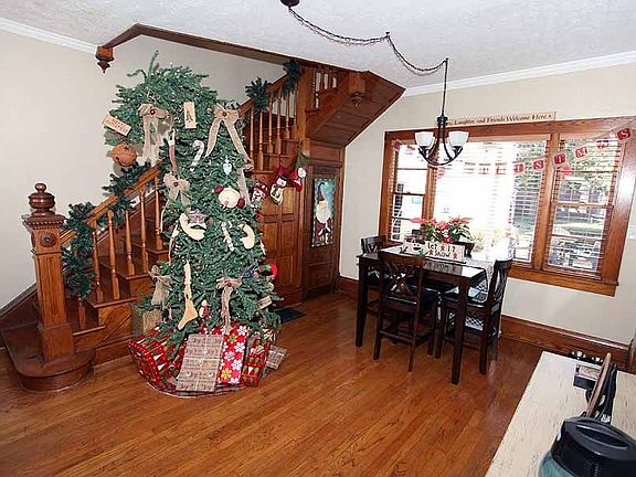 Gorgeous foyer impresses and sets the ambiance of this lovely home. Remodeled in all the right places yet older charm and character. Gorgeous woodwork, staircase & front door. Beautiful hard wood floors. Sunny, large eat-in kitchen - lots of cabinets & counter tops, half bath and stackable washer/dryer hook-up. Newly done bedroom with double closet and gas log FP. Upstairs bath - antique style sink, newer floor, nice tub w/shower. Foyer area - good for kids play, office or sitting area. BR w/double closets. Another generous BR - both newer carpet. Extra deep garage - 59 ft. Large private fenced back yard, covered porch w/all new decking/railing, 2 patio areas, fire pit, nice landscaping and lighting. Inviting front porch has also been completely updated. Home will show well. This is a must see! ONE YEAR HOME WARRANTY!